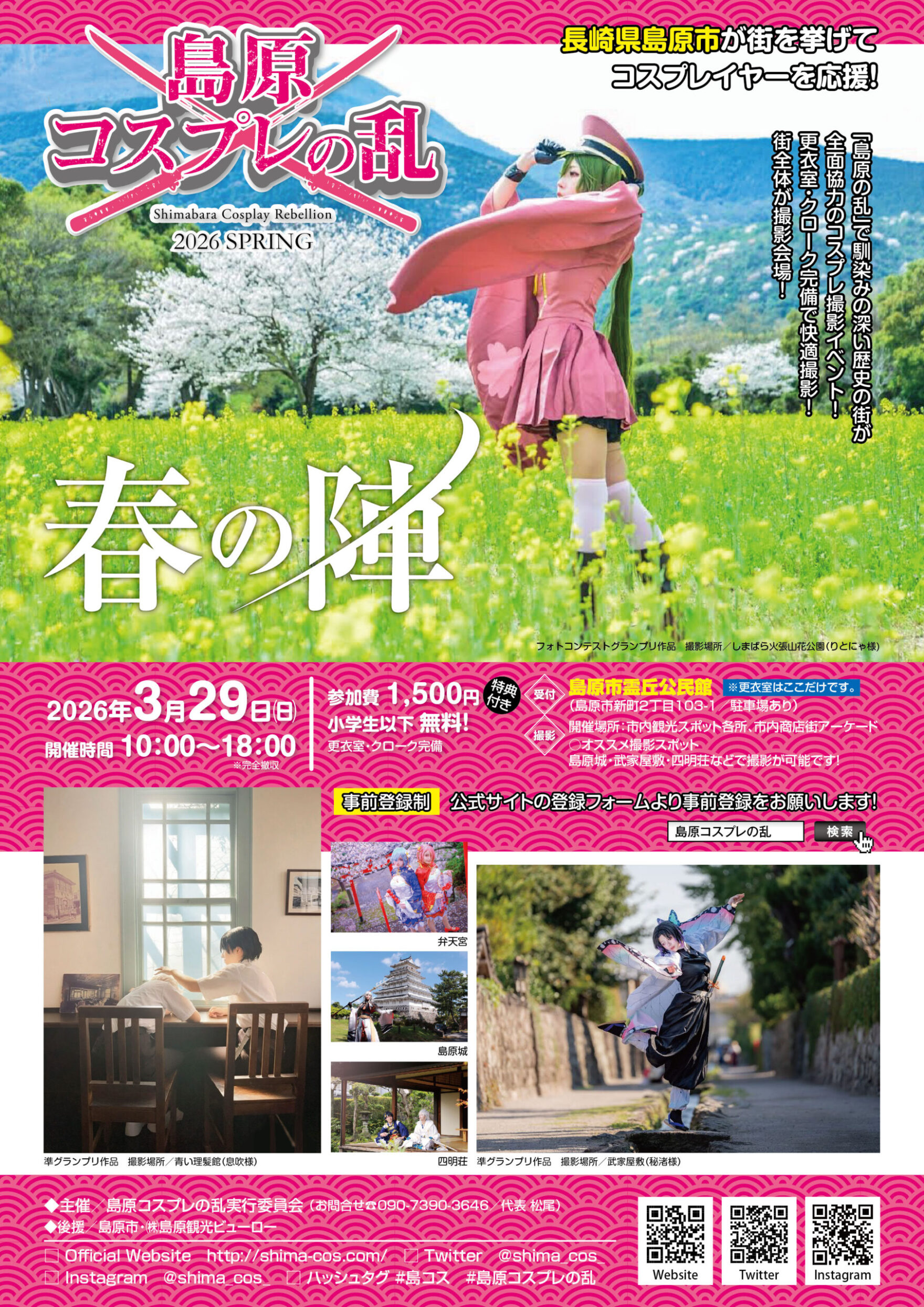 「島原コスプレの乱」は、島原の歴史ある城下町を舞台にしたコスプレイベントです。島原城や城下町一帯を会場とし、全国から集まったコスプレイヤーが、歴史的景観の中で撮影や交流を楽しみます。