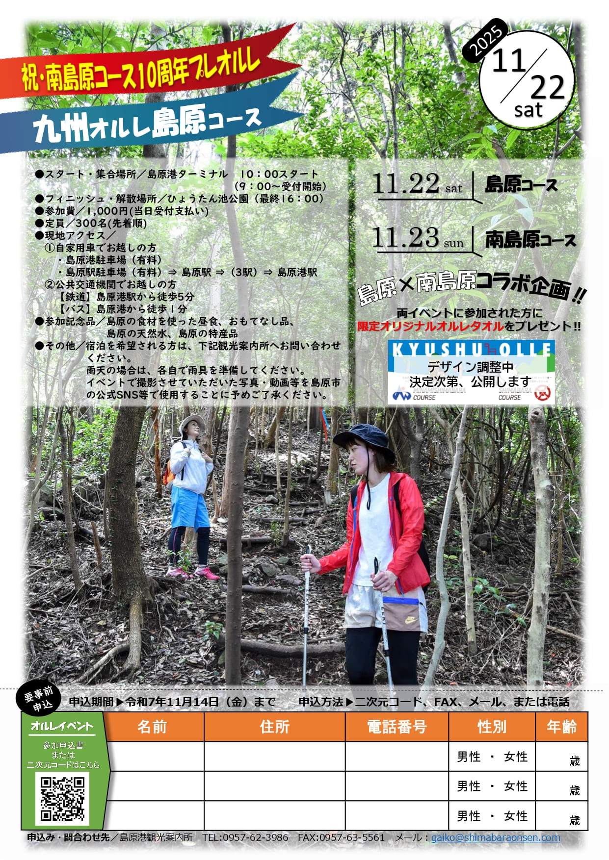 翌23日(日・祝)には南島原コースのイベントが開催!両イベントに参加された方には、限定オリジナルオルレタオルがプレゼントされます!