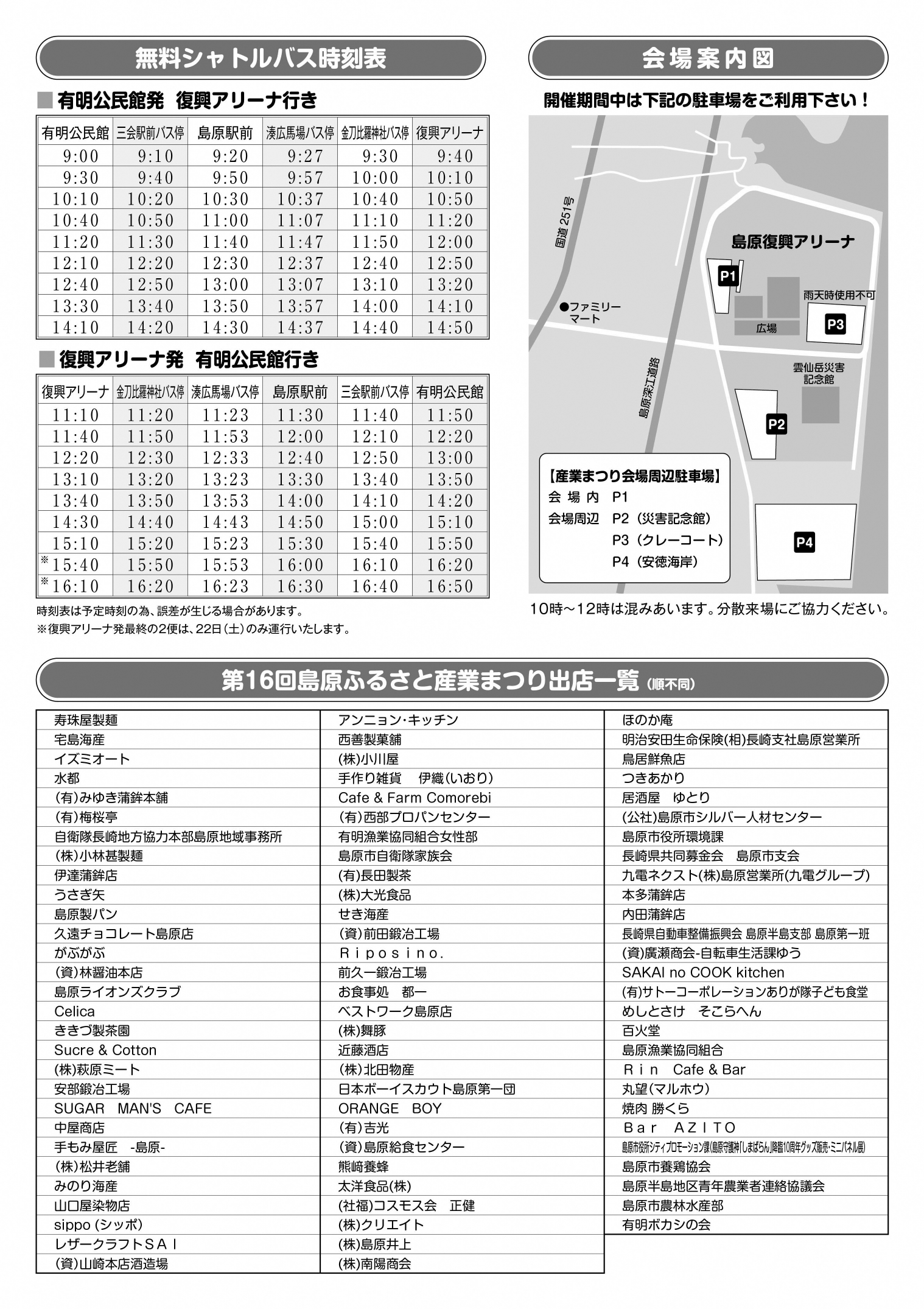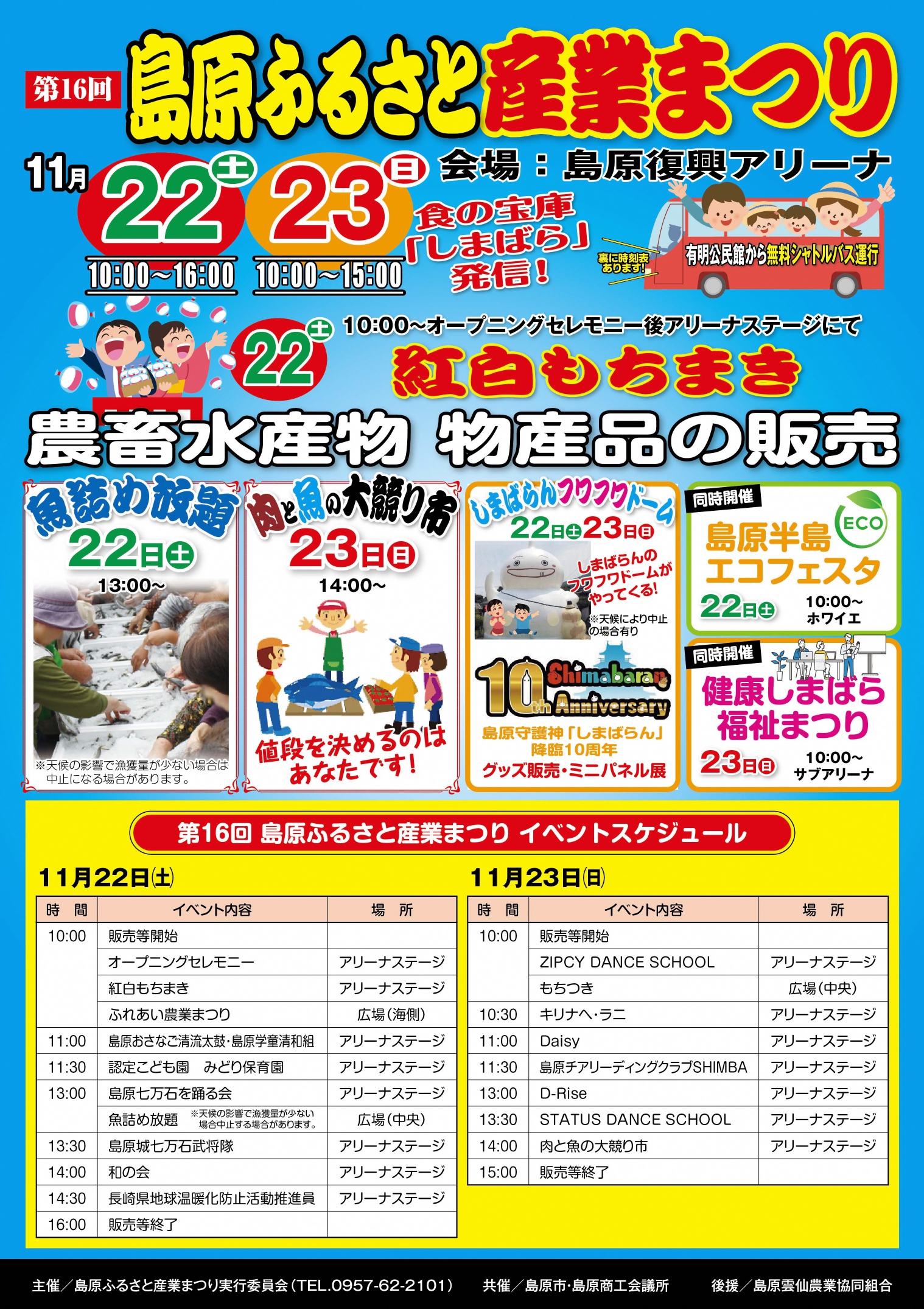 2025.11.14 【11月22・23日(土・日)】産業まつり2025開催のお知らせ 今年も「島原ふるさと産業まつり」が開催されます! 詳細はチラシおよび以下ページをご覧ください。 島原ふるさと産業まつり ▼チラシ(※タップ・クリックで拡大表示)