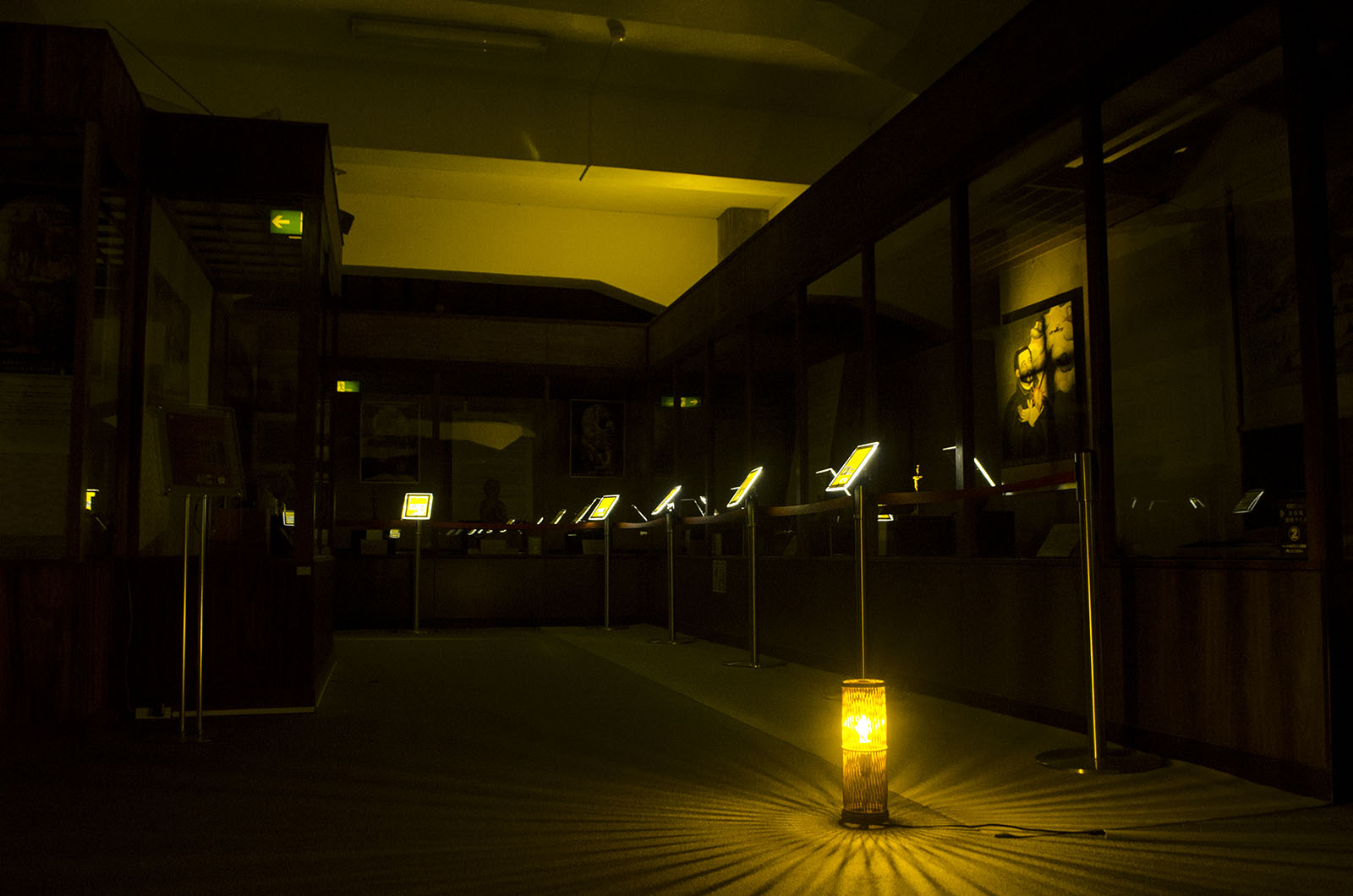 昼間とは違う雰囲気の薄暗い館内を、懐中電灯で照らしながら進んでいく。